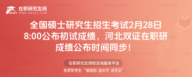 2026年全國碩士研究生招生考試初試成績將于2月28日8:00正式公布,河北雙證在職研成績公布時間與全國統考同步,這意味著報考河北地區雙證在職研究生的考生可在當天同一時間查詢自己的初試成績。對于在職考生而言,成績公布不僅是對備考階段的總結,更是開啟后續復試或調劑流程的關鍵節點。接下來,本文將圍繞河北雙證在職研成績公布時間的官方信息、查詢渠道及后續注意事項展開詳細說明。